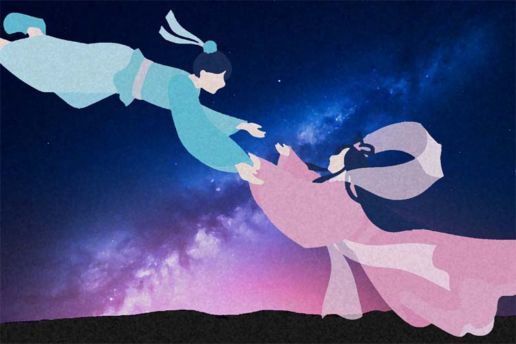 この話は2000年近く前、後漢時代の神話・民話「牛郎織女」を元として、後の時代に定着した古代中国の祭事に基づいたものです・・。